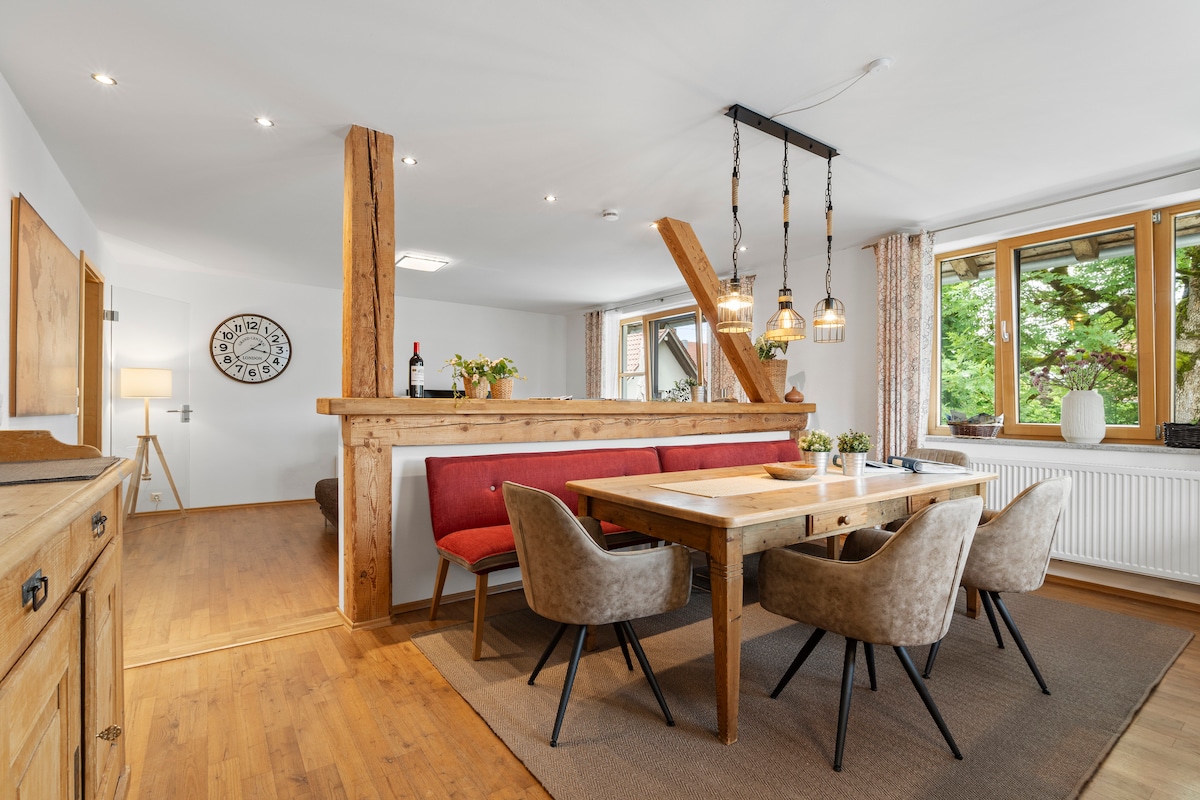 ¡Bienvenido a nuestro acogedor loft en el corazón de Algovia! Disfruta de cada estación en medio de esta impresionante región, a solo 5 minutos de la salida de la autopista. Relájate junto a la chimenea, experimenta nuestro concepto de iluminación único y cocina en la cocina totalmente equipada. El pequeño jardín y el balcón invitan a quedarse. Hay aparcamiento gratuito disponible. Descubre rutas de senderismo, lagos y pistas ciclables. ¡Vive momentos inolvidables en Algovia!
