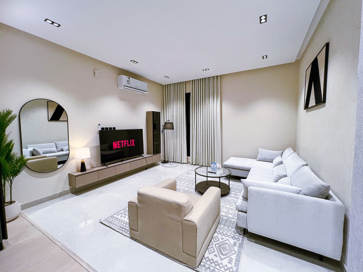 استمتع في هذا المسكن الهادئ والأنيق احترامًا لراحة الجيران يُرجى الحفاظ على الهدوء وعدم إصدار أصوات عالية خاصة بعد الساعة ١٠ مساءً شكرًا لتفهمكم وتعاونكم • شاشة 65 بوصة بدقة عالية+نتفلكس+يوتيوب بريميوم • إنترنت • دخول ذاتي بدون انتظار • غرفتين نوم سرير كبير وسريرين مفرد • أدوات استحمام فندقية • غسالة ملابس وكواية بخار • أدوات مطبخ متكاملة • أجهزة كهربائية متكاملة • ركن قهوة أنيق الموقع حي المهدية تبعد عن الدرعية 12 دقيقة وعن جامعة الملك سعود 17 دقيقة. نتشرف بإستضافتكم 🙏🏻