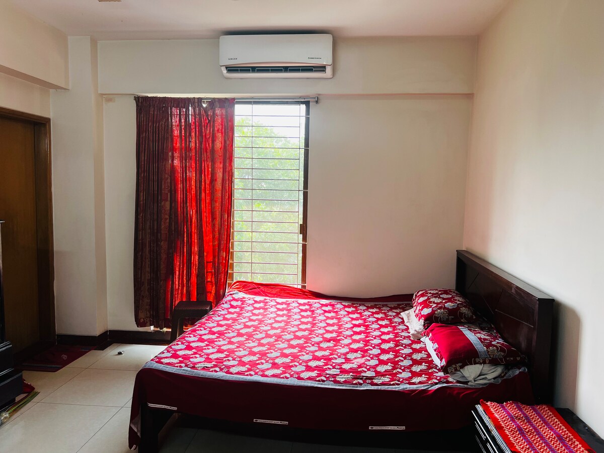 Moderno departamento con servicios de 3 dormitorios en Uttara, ¡a solo unos pasos del metro! Disfruta de 2 habitaciones con aire acondicionado, una cocina totalmente equipada, wifi rápido y una comodidad con estilo. Perfecto para familias, viajeros solitarios, extranjeros o viajeros de negocios. Camina hasta tiendas, restaurantes y las principales atracciones. Un refugio tranquilo y acogedor en el corazón de Dacca, ¡tu hogar lejos de casa!