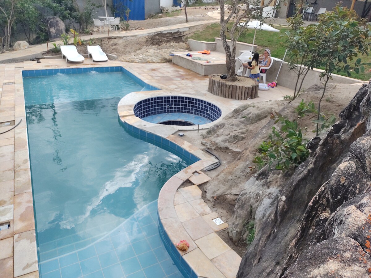 Relaxe com toda a família nesta acomodação tranquila. Casa grande e espaçosa a 5 km da cidade. A casa possui quartos grandes , 2 quartos Varanda , 2 salas com sofá . Possui 2 banheiros. Área externa com fogão a lenha , sinuca , piscina grande… além disso, próximo a Lagoa Azul , o mar de Diamantina. Garagem para até 2 carros, porém na porta da casa tem mais espaço para uns 6 veículos.