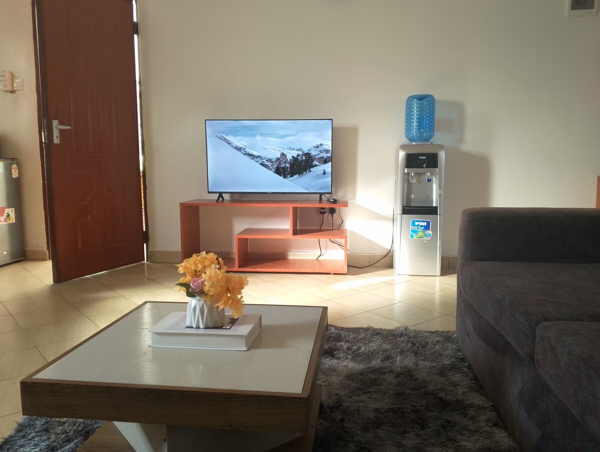 Una casa de 1 dormitorio con una decoración interior sencilla y minimalista en el centro de Diani. Amplia, luminosa y perfecta para estancias cortas o largas. Un cómodo sofá cama grande en la sala de estar, TV inteligente de pantalla plana, wifi rápido y un comedor que se puede utilizar como mesa de estudio/trabajo. Una cocina totalmente equipada, cama tamaño queen en el dormitorio, un baño limpio equipado con toallas y artículos de aseo. Techo alto con ventiladores de techo, ventiladores de pie adicionales, deshumidificador y grandes ventanas de vidrio con persianas para la circulación del aire.