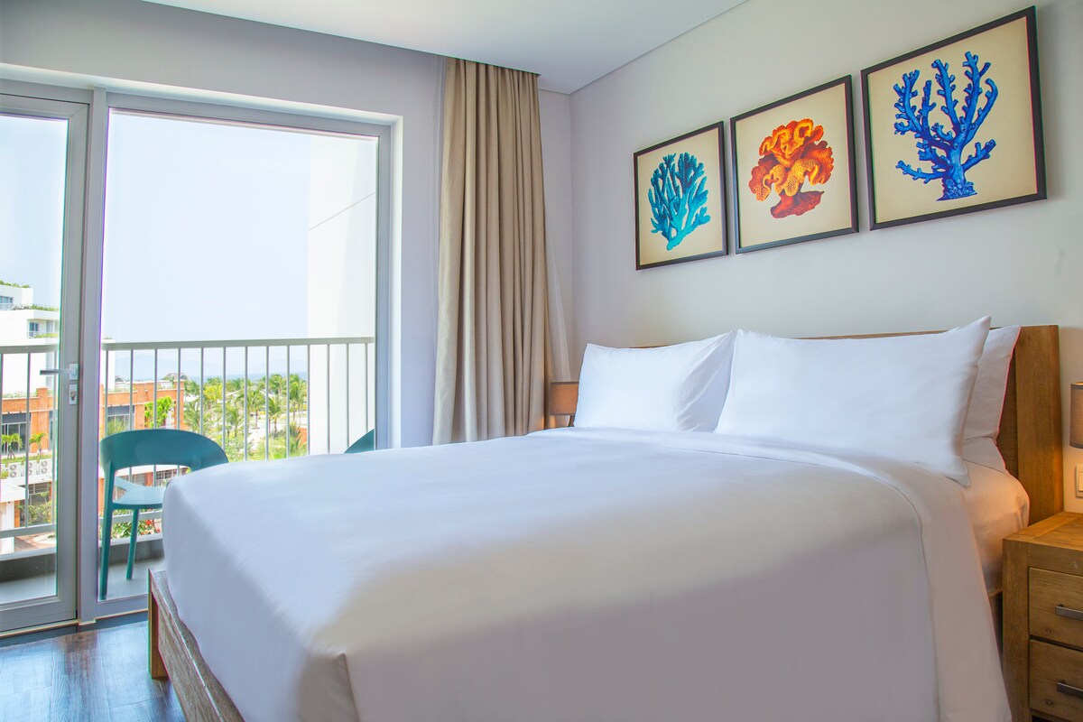 Los populares apartamentos de un dormitorio de 56 metros cuadrados (183 pies cuadrados) tienen todo lo que necesitas para unas vacaciones perfectas o un retiro relajante: solo tienes que desempacar tu maleta y disfrutar de tus días y noches en tu propia suite. Con una cama tamaño king de planta abierta, sala de estar, cocina americana totalmente equipada y balcón privado, los apartamentos están diseñados para proporcionar todo lo que deseas de un centro vacacional de primera clase a un precio razonable y son ideales para solteros, parejas o huéspedes corporativos.