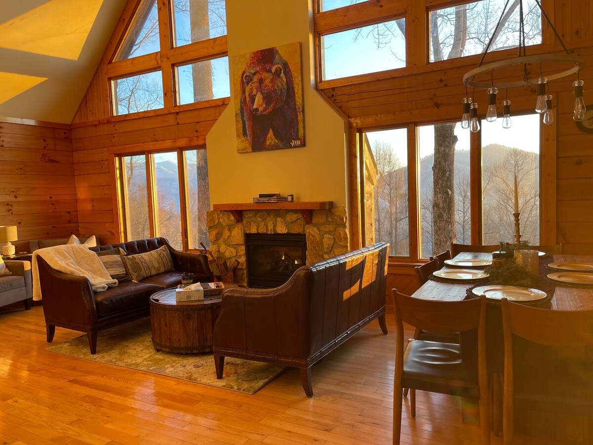 Welcome to Balsam Haven. Arrive at your 4 bedroom 2 bath mountain air oasis. Panoramic views of the Great Smoky Mountains from expansive windows and patio deck. A comfortable place to land, and close to everything fun and adventurous. Whether you're gathering around one of the two firepit areas, grilling out on the gas grill while taking in the views, or settling in for the night in front of the indoor fireplace. The fenced side yard is perfect for yard games with friends, family, and your pet.