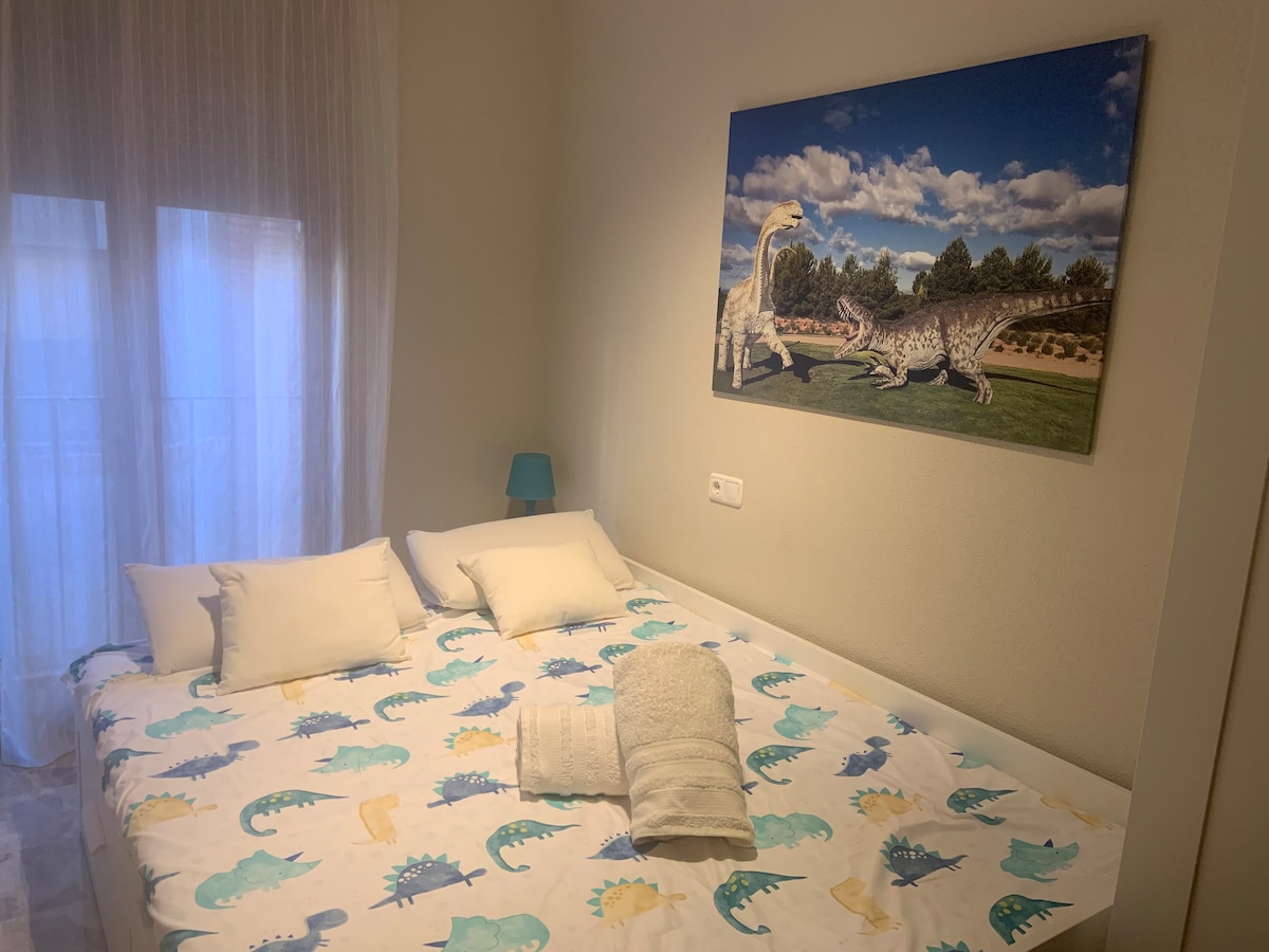 Disfruta de la sencillez de este coqueto alojamiento tranquilo y céntrico. A cinco minutos a pie del centro de Teruel,con todo que necesitas muy cerca,restaurantes,supermercado , monumentos más importantes,museos etc. Te sentirás como en casa,fácil aparcamiento alrededor. Televisión en salón y habitación, cocina completamente equipada. Cama de matrimonio y sofá cama grande. Pet friendly,ascensor,Google crhomecast, wifi disponible, aire acondicionado y ventilador techo en habitación.
