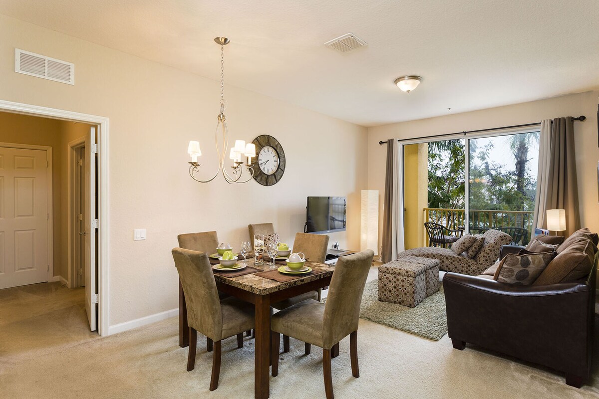 Located minutes drive to Disney, Universal, SeaWorld, Icon Park, & Orlando convention center. The "Taylor Inn" at "Vista Cay Resort" is a spacious 2brm/2bath apartment with balcony for outdoor lounging. Sleeps up to 6 guests. Full kitchen available with stainless steel appliances. Dinning areas: 3 seat counter top, 4 seat breakfast nook & a separate 6 seat formal dinning room. Laundry room access via kitchen. Dedicated desk for laptop use. WiFi & Cable TV included. Free parking available.