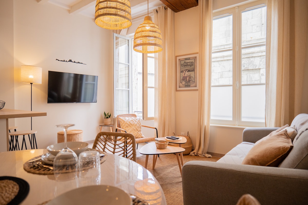Situé dans un immeuble résidentielle sécurisé au 1er étage , vous profitez d’un duplex rénové et entièrement remis au goût du jour dans une ambiance moderne situé à quelques pas du centre ville de Saumur. Il dispose d’une cuisine équipée, d’un salon avec canapé convertible, à l’étage d’une chambre avec lit double et d’une salle de douche attenante. D’une super Tv Oled Ambilight équipée d’une apple Tv avec Netflix,.. Le wifi est disponible dans tout le logement. Au plaisir de vous accueillir.