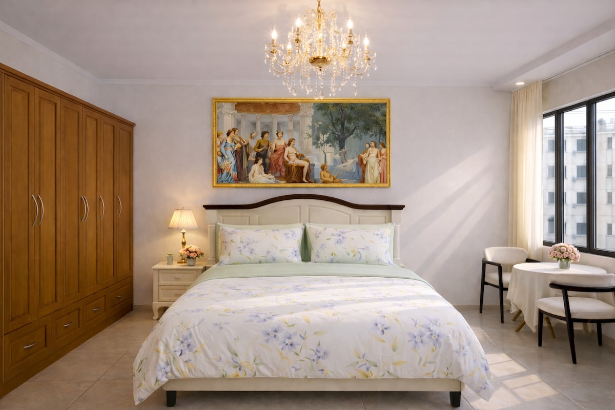 Set on a fresh, tree-lined street in the heart of Saigon, this residence stands out instantly. The building feels nicely designed, and the calm, leafy neighborhood keeps everything cool and peaceful while iconic landmarks stay just steps away. Inside, the suite is bright, elegant, and fully renewed, with every detail set for a long, comfortable stay. Open the curtains and the city spreads out in a wide, beautiful view.