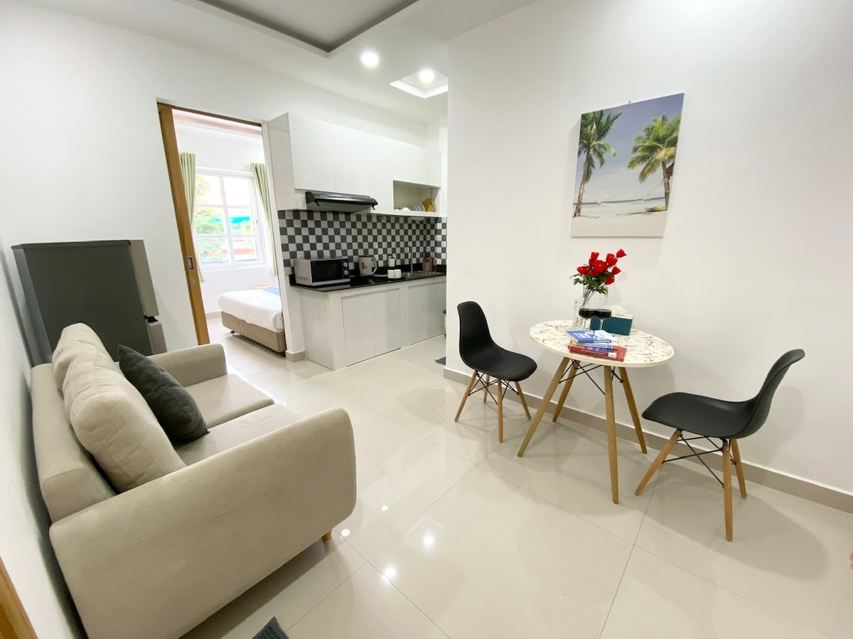 ¡Disfrutemos de una experiencia elegante en el centro de la ciudad! Es espacioso, limpio y tiene luz natural. La cocina privada y el baño están separados del dormitorio. - 1 cama suave para dormir bien. - Balcón con bonitas vistas a la ciudad. - Ascensor, aire acondicionado, sofá, armario, mesa de comedor. - Nevera, microondas, arrocera, estufa de inducción, hervidor de agua, utensilios de cocina. - Smart TV con conexión wifi rápida. - Limpieza GRATUITA, lavandería y aparcamiento. - Acceso las 24 horas, 7 días a la semana y seguro. #Dirección: calle Nguyen Phi Khanh, distrito 1