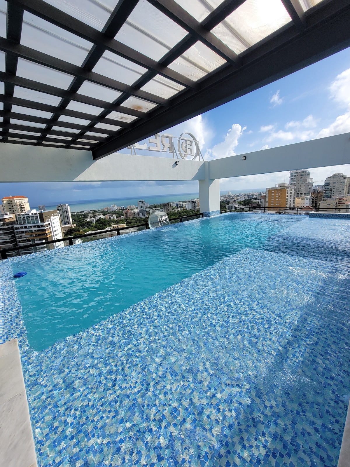 Disfruta de una experiencia de lujo en este céntrico alojamiento en uno de los barrios más seguros y acogedor de Santo Domingo, con mucho que ofrecer en las proximidades, bares, restaurantes,malls, supermercados, farmacias, a solo unos metros. Apartamento full equipado, en un edificio moderno, en un nivel 10, donde podrás disfrutar de unas vistas espectaculares. Impresionante área común, en el piso 12, piscina infinity, gym, cine, área de niños, barbecue Seguridad 24/7 y plaza propia de garaje