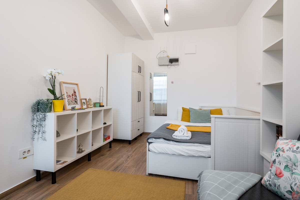 ¡Te damos la bienvenida a casa de Raluca y Andrei! Trabajamos a tiempo completo y, entre medias, dedicamos nuestro tiempo a este estudio, que esperamos sea una estancia acogedora y placentera para tu viaje a Bucarest. Esperamos que te sientas como en casa con Netflix gratuito, una cocina totalmente equipada, una estética limpia y cualquier cosa que necesites cerca. El apartamento está bien situado junto a centros comerciales, varios supermercados y tiendas de comestibles y un mercado de agricultores. Desde aquí se puede llegar fácilmente en transporte público al centro de la ciudad.