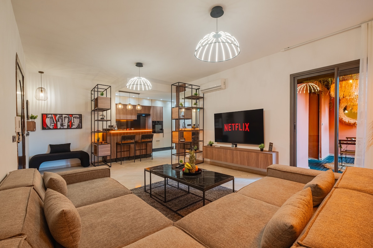Bienvenido a un exquisito santuario urbano en el vibrante distrito de Gueliz de Marrakech, donde el confort contemporáneo se mezcla a la perfección con la refinada elegancia marroquí. Diseñado cuidadosamente y bellamente decorado, este departamento coloca a los viajeros más exigentes a pocos minutos de los mejores cafés de la ciudad, restaurantes gourmet, boutiques de diseñadores y animada vida nocturna, todo a un corto paseo de distancia.