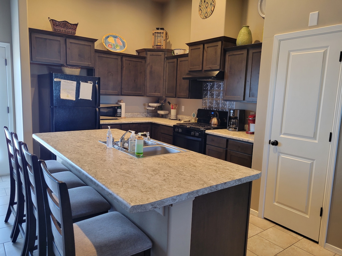 ¡Esta moderna casa de lujo está hecha para adaptarse a todos los huéspedes! Ya sea que busques una escapada de fin de semana o un lugar para trabajar y jugar, esta casa lo tiene todo en la hermosa Las Cruces, NM. Ubicada en un barrio completamente nuevo cerca del campo de golf Red Hawk y de varios parques para familias. Los huéspedes pueden descansar tranquilamente en uno de los 4 dormitorios y disfrutar de servicios como una parrilla al aire libre, sala de estar al aire libre, juegos de césped, juegos de mesa y la mayoría de los artículos de cocina. Internet de alta velocidad incluido y SmartTV.