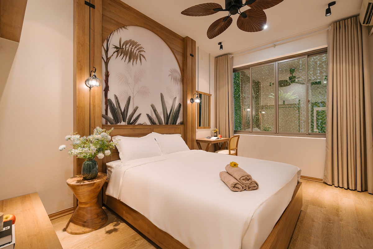 Habitación central Ba Dinh, cerrada, mucha luz.