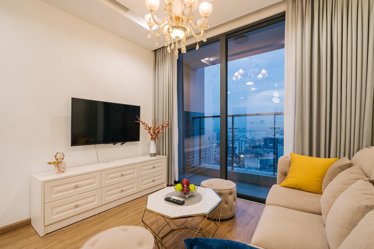 Căn hộ 2 phòng ngủ cao cấp nằm trên tầng cao của Vinhomes Metropolis, Ba Đình. Không gian được thiết kế tinh tế với gam màu hiện đại, cửa sổ lớn đón ánh sáng tự nhiên và tầm nhìn thành phố. Căn hộ được trang bị đầy đủ tiện nghi với phòng ngủ thoải mái, khu vực sinh hoạt ấm cúng, bàn làm việc, bếp đầy đủ tiện nghi, máy giặt sấy riêng và WiFi mạnh. Đây là lựa chọn lý tưởng cho khách công tác, gia đình hoặc lưu trú dài hạn tìm kiếm sự thoải mái, riêng tư và vị trí trung tâm Hà Nội.