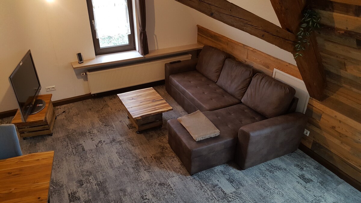 Respira el aire de la Selva Negra y visita nuestro precioso apartamento de 1 habitación en el antiguo ayuntamiento de Loßburg-Betzweiler. Te espera un alojamiento de 35 m² con encanto al estilo de la Selva Negra en dos niveles. El punto de partida perfecto para realizar maravillosas caminatas por el valle del Heimbachtal, con conexiones a Freudenstadt (y también a la carretera de Schwarzwaldhochstraße) y Oberndorf, actividades interesantes como visitas guiadas a cervecerías, plantas de torrefacción de café o destilerías, paseos con cabras, cursos de pintura con tiza y mucho más.