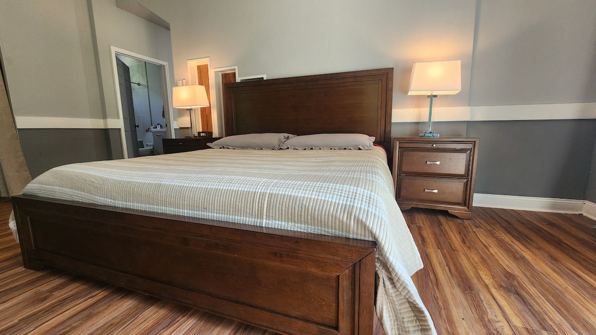Relájate en esta acogedora y elegante suite de invitados con entrada privada, decoración relajante y un ambiente relajado perfecto para parejas o viajeros solos. Camina hasta la plaza histórica de Fairburn para tomar un café o picar algo, o conduce 15 minutos hasta el aeropuerto de ATL. En el interior, disfruta del jazz suave, la ropa de cama lujosa y todo lo que necesitas para recargar energías entre aventuras o vuelos. Diseñado para los huéspedes que valoran la comodidad, la privacidad y un toque de encanto sureño: tu relajante base de operaciones cerca de Atlanta.