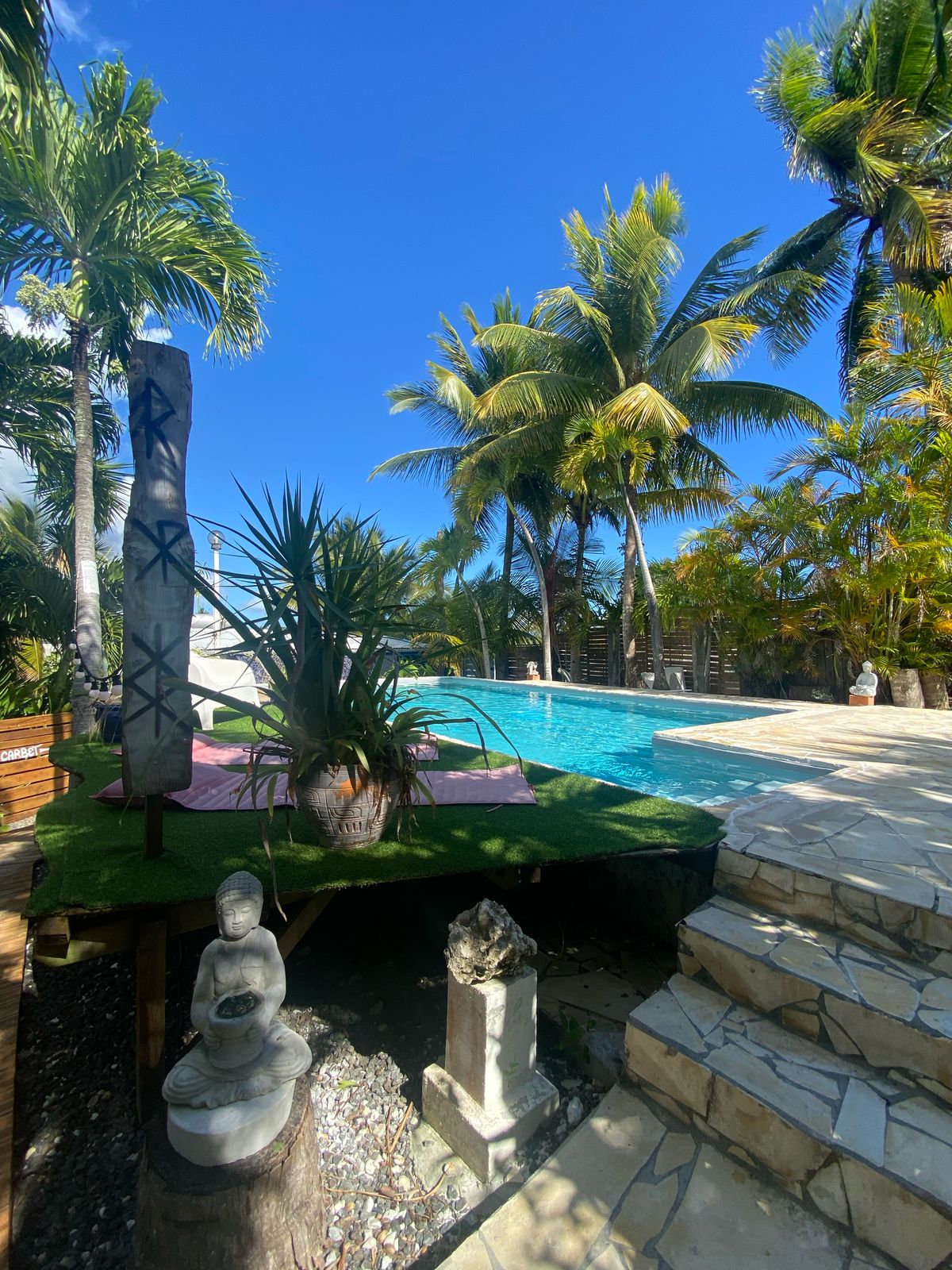 A 250 m a pie de la playa, en un ambiente tropical este alojamiento invita a pasar un buen rato entre las visitas a la isla y las salidas a la playa y el surf. Está equipado con: - 2 dormitorios con cama de 140, con aire acondicionado y equipados con agitadores de aire, - cocina equipada, - lavadora, - baño, - piscina privada, - cisterna de agua para evitar cortes intempestivos, - parking cerrado.