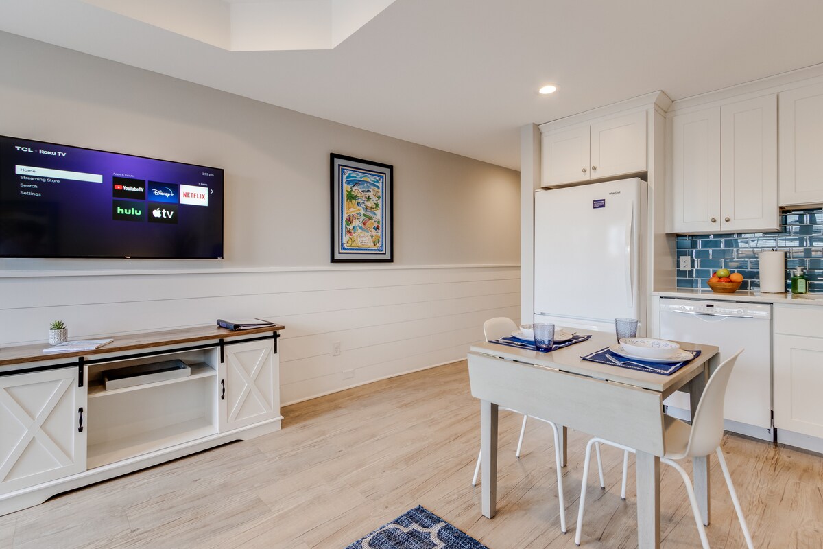 ¡Te damos la bienvenida a The Coastal Quad, el primer centro vacacional de bolsillo de Nueva Jersey! Reservarás una estancia en una de las cuatro lujosas suites de cabaña diminutas de 1BR, ¡por lo que cada visita es una nueva aventura! Disfrutarás de tu propio jacuzzi privado, chimenea, parrilla, patio vallado y acceso a un campo de minigolf compartido en la azotea, sala de juegos retro, gimnasio completo con sauna, oficina, lavandería y mucho más. Ubicado a pocos pasos de una tranquila playa de la bahía y a poca distancia en auto de Cape May y Wildwood, ¡este es el centro vacacional más emocionante de la orilla!