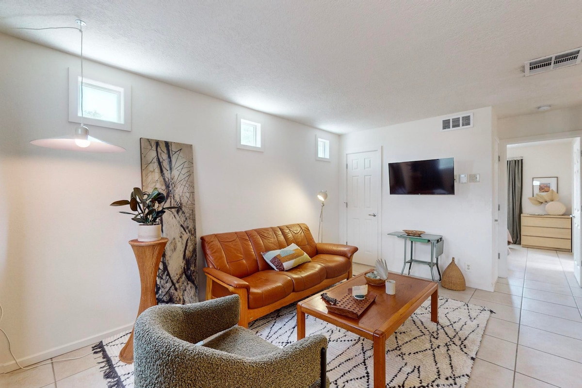 Este moderno y acogedor apartamento tipo estudio se encuentra justo al lado del distrito de Sawmill y de Old Town Plaza, por lo que es muy fácil planificar tu visita para explorar lo mejor de Albuquerque. Esta unidad forma parte de un complejo privado de tres viviendas. Bien equipado con todas las necesidades para sentirte como en casa si quieres quedarte, cocinar y ver una película, ¡o fácil acceso a la autopista para llegar a cualquier lugar que necesites ir!