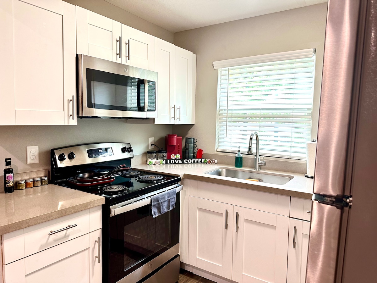 Nuestro departamento en el garaje de arriba es espacioso, soleado y está ubicado en un vecindario residencial tranquilo y seguro. Cerca del centro de la ciudad, el centro médico, los parques y las tiendas. Hay excelentes lugares para cenar a pocos pasos. Fácil acceso a las principales autopistas sin peaje con amplio estacionamiento en la calle. Somos un hábitat de mariposas monarca, por lo que es posible que veas mariposas emergentes durante tu visita. Somos grandes fans de la música y este interés se refleja en nuestro arte. El servicio de limpieza semanal incluye cambio de ropa de cama.