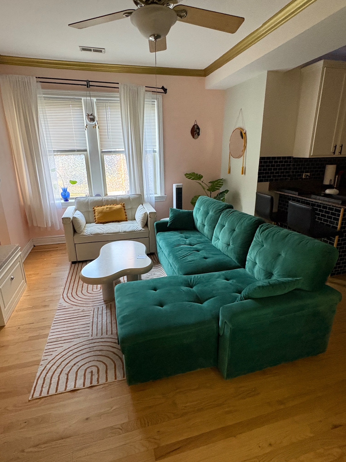 1 cama «king», 1 cama «queen» y 1 colchón inflable Check-in sin restricción de horario Asistencia 24/7 Propiedad de Superanfitrión AC central y calefacción Cocina totalmente abastecida. Baño con toallas limpias y artículos esenciales 1 plaza de aparcamiento GRATIS (¡un hallazgo raro en la ciudad!) Este encantador apartamento de 2 dormitorios totalmente equipado es perfecto para parejas, familias con niños, viajeros de negocios o visitantes universitarios. Ubicado a solo unos pasos de la Universidad DePaul, disfruta del estilo de vida peatonal de uno de los barrios más vibrantes de Chicago.