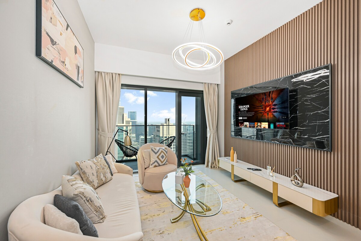 Despiértate con impresionantes vistas del Burj Khalifa desde este elegante departamento de 1 dormitorio, perfectamente ubicado en el corazón de la ciudad. Disfruta de una estancia cómoda y lujosa con servicios de primer nivel, decoración bohemia moderna y fácil acceso a las mejores atracciones. Por la noche, relájate con un impresionante telón de fondo al atardecer, seguido del fascinante espectáculo de luces Burj Khalifa y el resplandeciente horizonte de la ciudad, desde tu Airbnb. ¡Reserva ahora para disfrutar de una experiencia inolvidable en Dubái!