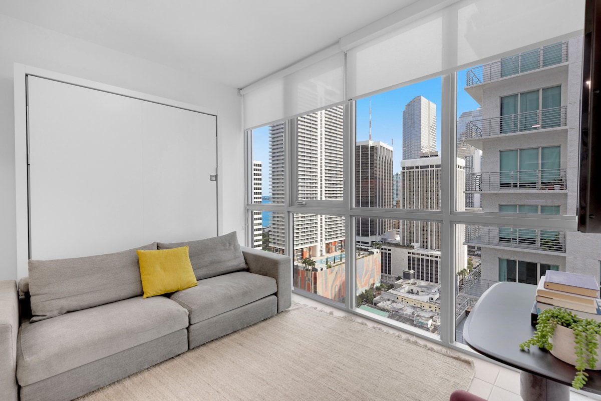 ¡Estudio en el corazón de Brickell con vistas a la ciudad!