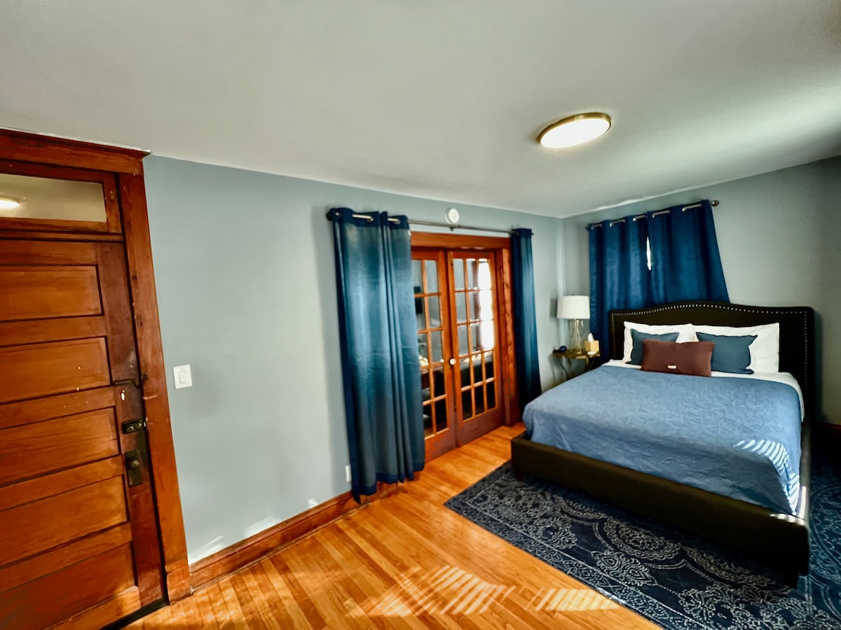 ¡Nuestro pequeño estudio Boho en el último piso de un tranquilo 4-plex es lo último en comodidad moderna! Cada detalle está diseñado pensando en el lujo, incluyendo una cocina y baño personalizados, cortinas de terciopelo y acabados finos. Relájate con estilo en una lujosa cama tamaño king, un sofá cama de matrimonio, una cocina bien equipada, lavadora y secadora, un patio y un aparcamiento privado. Estamos ubicados en Little Bohemia, cerca del centro de la ciudad, CWS y el zoológico. La limpieza mejorada y el registro autónomo garantizan que estés en buenas manos. ¡Reserva ahora para una estancia inolvidable!