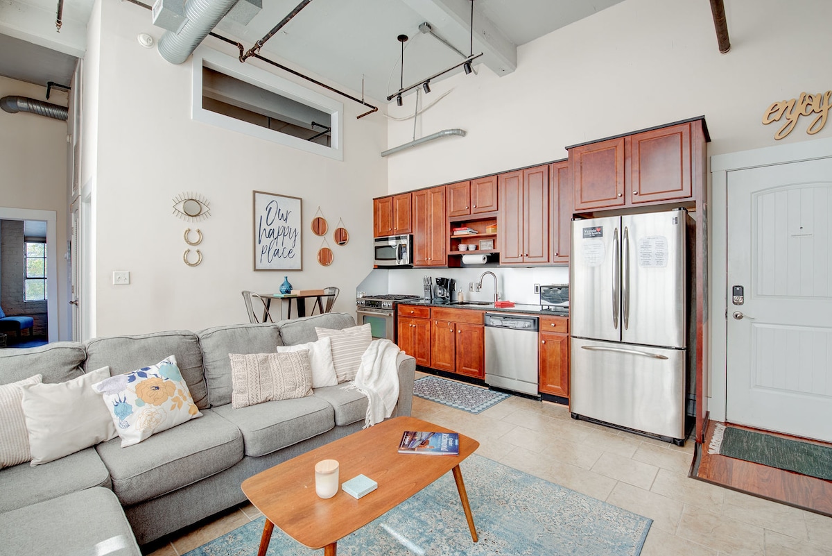 El huésped principal debe tener 25 años. Saludamos a todos los huéspedes en persona a su llegada. Se te pedirá que presentes un documento de identificación oficial válido para hacer una copia para nuestros registros. ¡Almacén recién renovado con una ubicación céntrica que cuenta con techos de hojalata de 100 años, suelos de corazón de pino, nuevas comodidades que incluyen encimeras de granito, electrodomésticos de acero inoxidable, aire acondicionado/calefacción central, baños de baldosas de cerámica, lavavajillas, lavadora/secadora! Registro de entrada después de lo normal disponible, de 18:00 a 22:00 por un cargo de 30 USD. Se puede organizar un registro anticipado (si está disponible) por una tarifa de 20 USD.