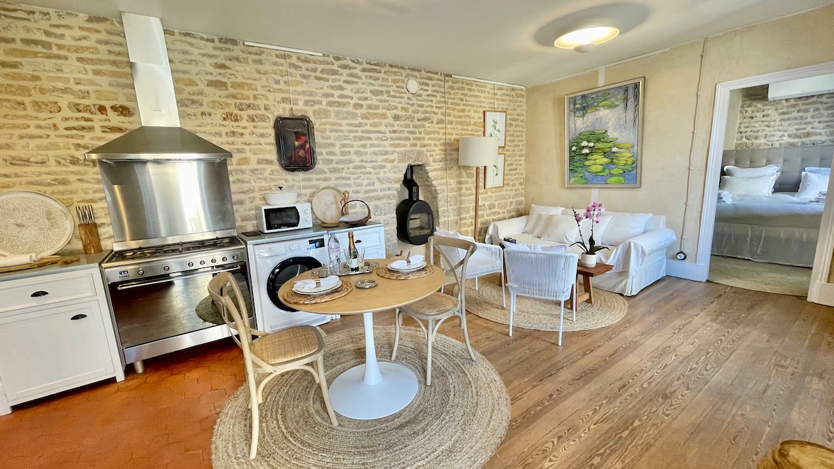Encantadora casa de piedra con un jardín privado cerrado, ubicada en Beaune, entre los Hospices de Beaune y los viñedos. Casa de piedra construida en 1885 renovada con buen gusto en 2019. Cena junto a la chimenea, almuerzo en el jardín, posición ideal a menos de 10 minutos a pie desde el centro de la ciudad. Alquiler de bicicletas y tienda de comestibles a la vuelta de la esquina. 2 ruedas bienvenidas en el jardín. Diseño. Cama tamaño king. Sábanas de calidad. Cocina equipada, barbacoa, tumbonas. Lavadora. Secadora. Aparcamiento gratuito en la calle.
