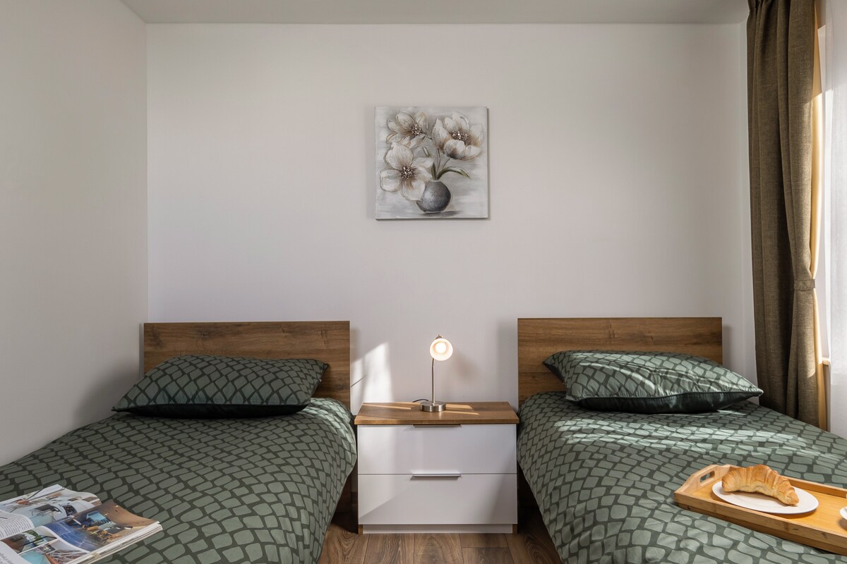 Mi piso - loft es muy cómodo, tiene 2 dormitorios, 1 baño y una gran cocina, como un comedor y una sala de estar, y la vista desde el balcón es algo que no se puede explicar con las palabras. ¡Tienes que sentirlo! Tendrás un estacionamiento privado con respecto a la casa. Se encuentra a 10 minutos a pie del centro de la ciudad y la playa.