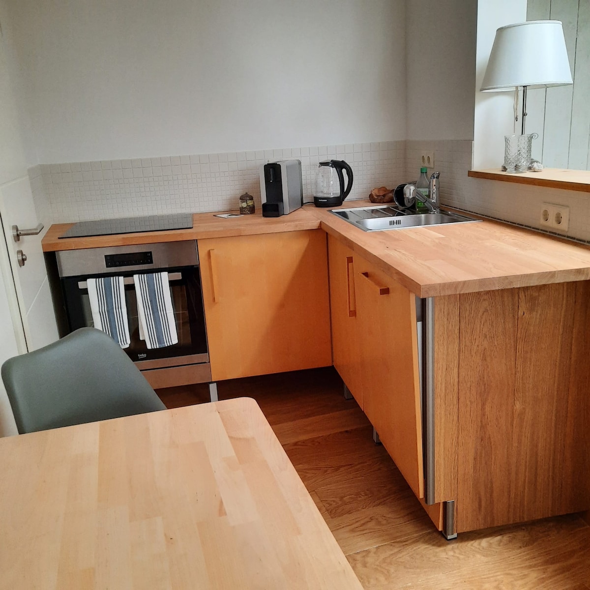 Welcome to ApartNaest and this cosy, stylish 3-room apartment in the heart of Radeberg, which offers everything you need for a great stay in Radeberg: ✔️Apartment with 2 comfortable large double beds ✔️ Cosy sofa bed in the living area ✔️Smart TV with easy app access and radio ✔️Free parking ✔️Super central, within walking distance of the city centre ✔️Fully equipped kitchen for the best possible self-catering experience