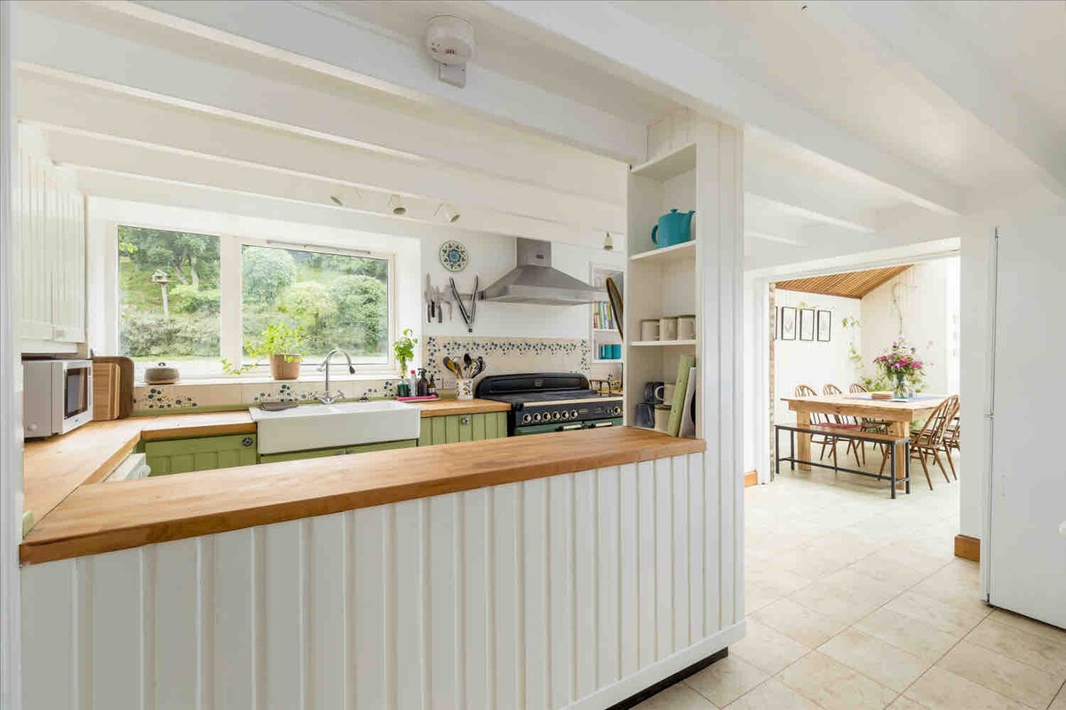 Esta encantadora casa de campo de 1830 tiene un jardín delantero y trasero con impresionantes vistas al mar. Está a pocos pasos de la playa. Disfruta de los amplios jardines totalmente cerrados mientras contemplas el mar. Acabamos de completar nuevos interiores, con 2 dormitorios, ambos con camas tamaño king (Reino Unido) y suaves sábanas blancas en todas partes. Una cafetera Nespresso, suelos de madera, una mini barbacoa y arte local en las paredes te permiten disfrutar de una casa de campo junto al mar con la sensación de un hotel. Tenemos estacionamiento en el sitio.