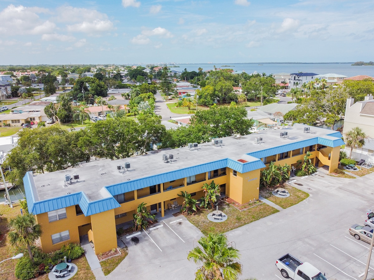 Plan your unforgettable stay at this 1 bedroom condo at Beso ( not a studio) with 2 Balconies for your morning coffee or beautiful sunsets The location is perfect to walk to town where you’ll find many Quaint shops, restaurants and Breweries Free Wi-fi Free parking Only 10 min to honeymoon island and the ferry to Caladesi Island 15 minutes to Clearwater Beach 2 salt water Pools and a hot tub Marker 8 Tiki Bar and restaurant 28 mile trail across St. Bicycle rental through the office for a fee
