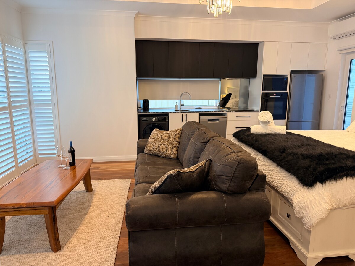 ¡Ideal para escapadas en pareja con absolutamente todo lo que necesitas para una estancia perfecta en Margaret River! Estudio de un dormitorio renovado, moderno y espacioso. Situado en el corazón de la región de Margaret River, ¡justo al final del camino del mercado de agricultores! Te encantará la lujosa cama tamaño king, los muebles de calidad, el baño luminoso y moderno, la sala de estar con cocina de planta abierta llena de luz y el patio privado con jardín de bambú frondoso y barbacoa. Acceso a todo el estudio, patio privado y aparcamiento gratuito.