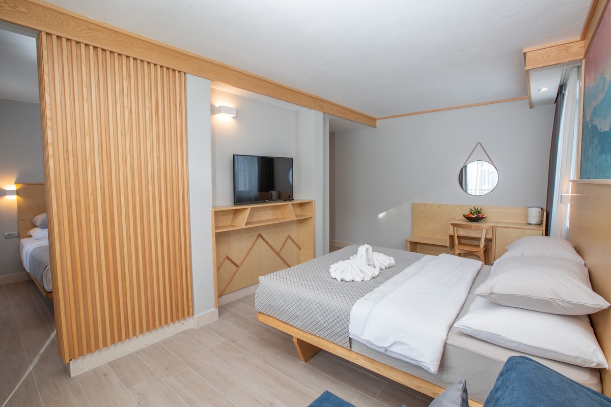 Valorarás el tiempo que pases en esta suite junior. La suite junior debe su nombre a una de las flores más populares del Parque Nacional Durmitor, Marigold. Esta es una habitación elegante situada en la segunda planta de los apartamentos Casa di Pino Eco Lodge. A solo 500 metros del centro del pueblo. Wifi, Netflix, desayuno y uso de sauna finlandesa están incluidos en el precio. Hay aparcamiento gratuito disponible en el hotel.