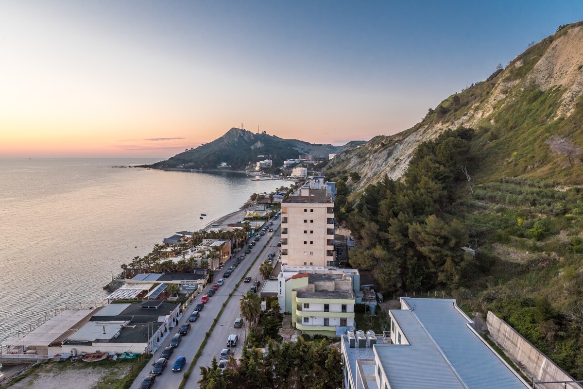 Despiértate con las vistas al mar desde la ventana de tu dormitorio y relájate en el salón con vistas directas al antiguo anfiteatro, al ayuntamiento de Durrës y a la vibrante ciudad que hay debajo. Ubicado en uno de los edificios más seguros y modernos de la ciudad, este apartamento luminoso y elegante combina estilo, comodidad y vistas inolvidables.
