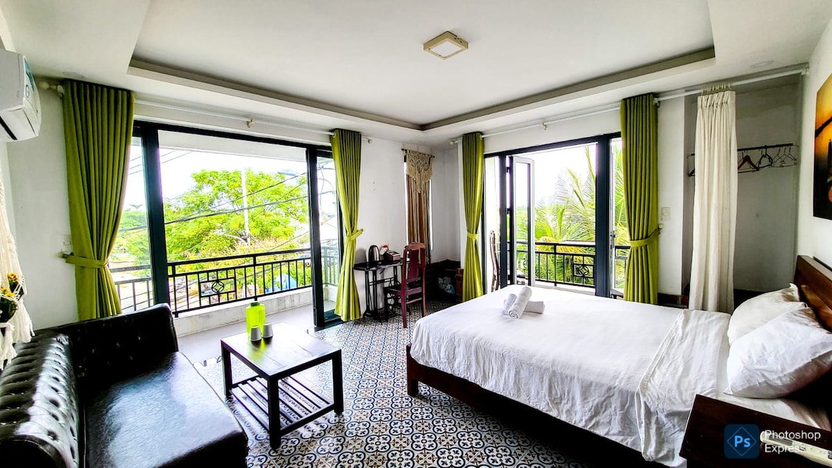 Disfruta de un alojamiento tranquilo junto al río en Hoi An, a solo 2 km del encantador casco antiguo de Hoi An. Esta habitación ofrece impresionantes vistas al río y wifi de alta velocidad. La habitación está cuidadosamente diseñada para su comodidad, con un acogedor colchón de alta calidad, aire acondicionado y una mininevera. El baño privado incluye una ducha, un secador de pelo y toallas limpias para tu comodidad. Tanto si estás aquí para explorar las vibrantes calles de Hoi An como para relajarte con las magníficas vistas al río