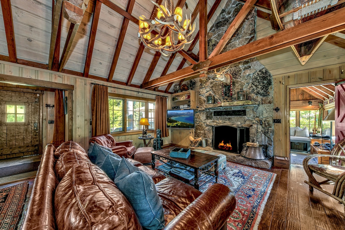 Esta lujosa casa tiene todas las comodidades del hogar en un entorno que una vez que llegues nunca querrás marcharte. Relájate en el cómodo sofá del patio de piedra al aire libre mientras piensas en subir por el sendero hasta Eagle Rock para disfrutar de una vista insuperable del lago Tahoe. Te costará mucho encontrar una casa vecina, ya que la ubicación aislada de esta propiedad es muy privada. En el interior, retrocede en el tiempo al entrar en el antiguo encanto de Tahoe que se ha mejorado con elegantes toques modernos.
