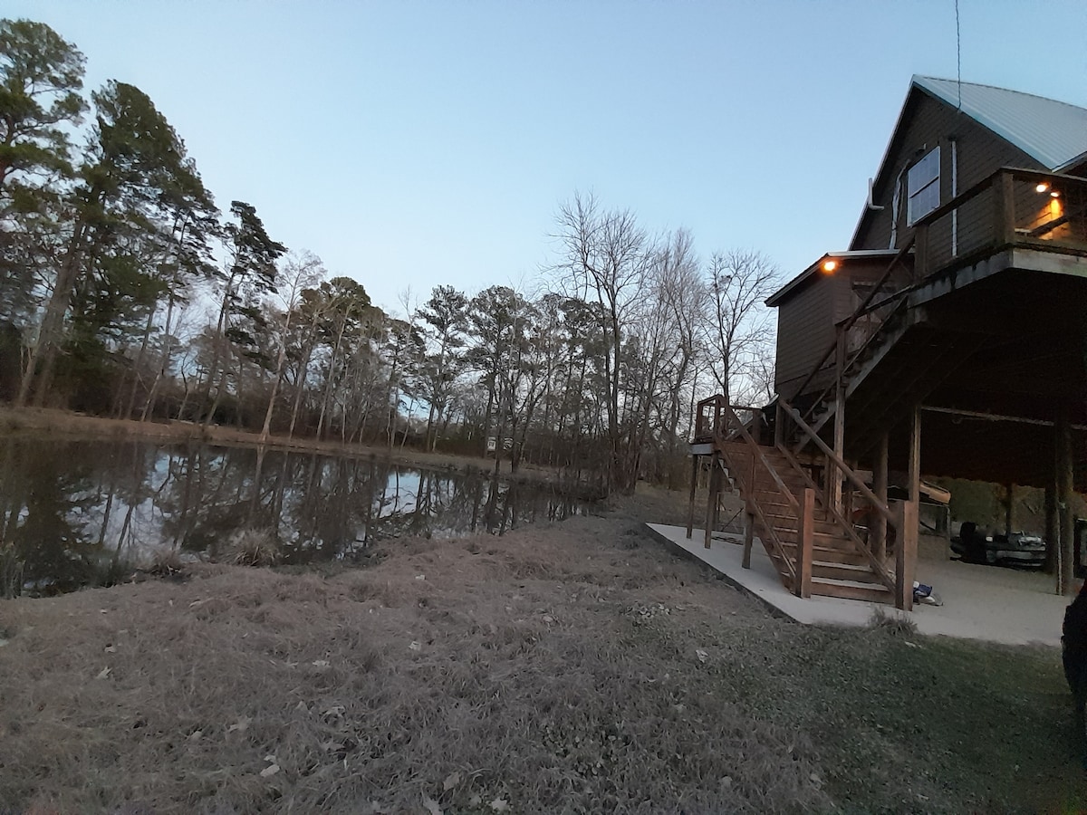 Cabaña cajún de pescador frente al lago con vistas increíbles