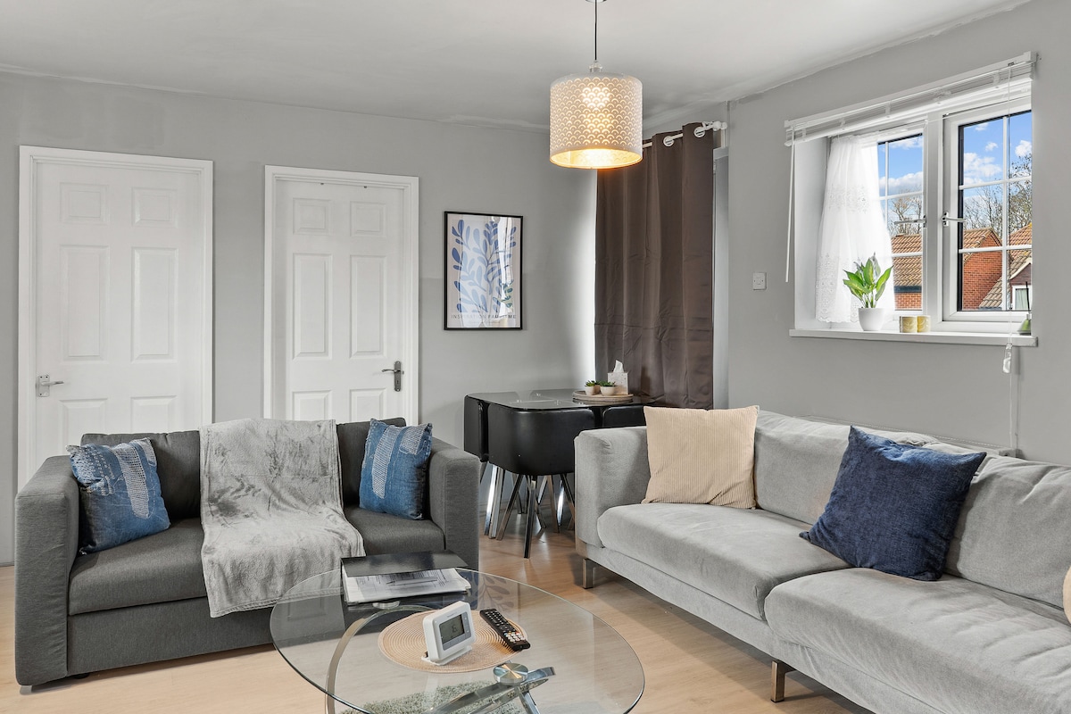 Siéntate y relájate en este espacio tranquilo y elegante. Este apartamento de 2 dormitorios y 2 pisos está convenientemente ubicado en el vibrante vecindario de East Ham. Situado en un desarrollo privado seguro de 2 unidades, disfrutarás de paz y tranquilidad mientras estés en el interior, pero el vibrante barrio te espera al aire libre. Este es un refugio ideal para una familia o un pequeño grupo que busca explorar la vida local de Londres desde un lugar de fácil acceso con excelentes conexiones de transporte y muy cerca del centro ExCel de Londres.