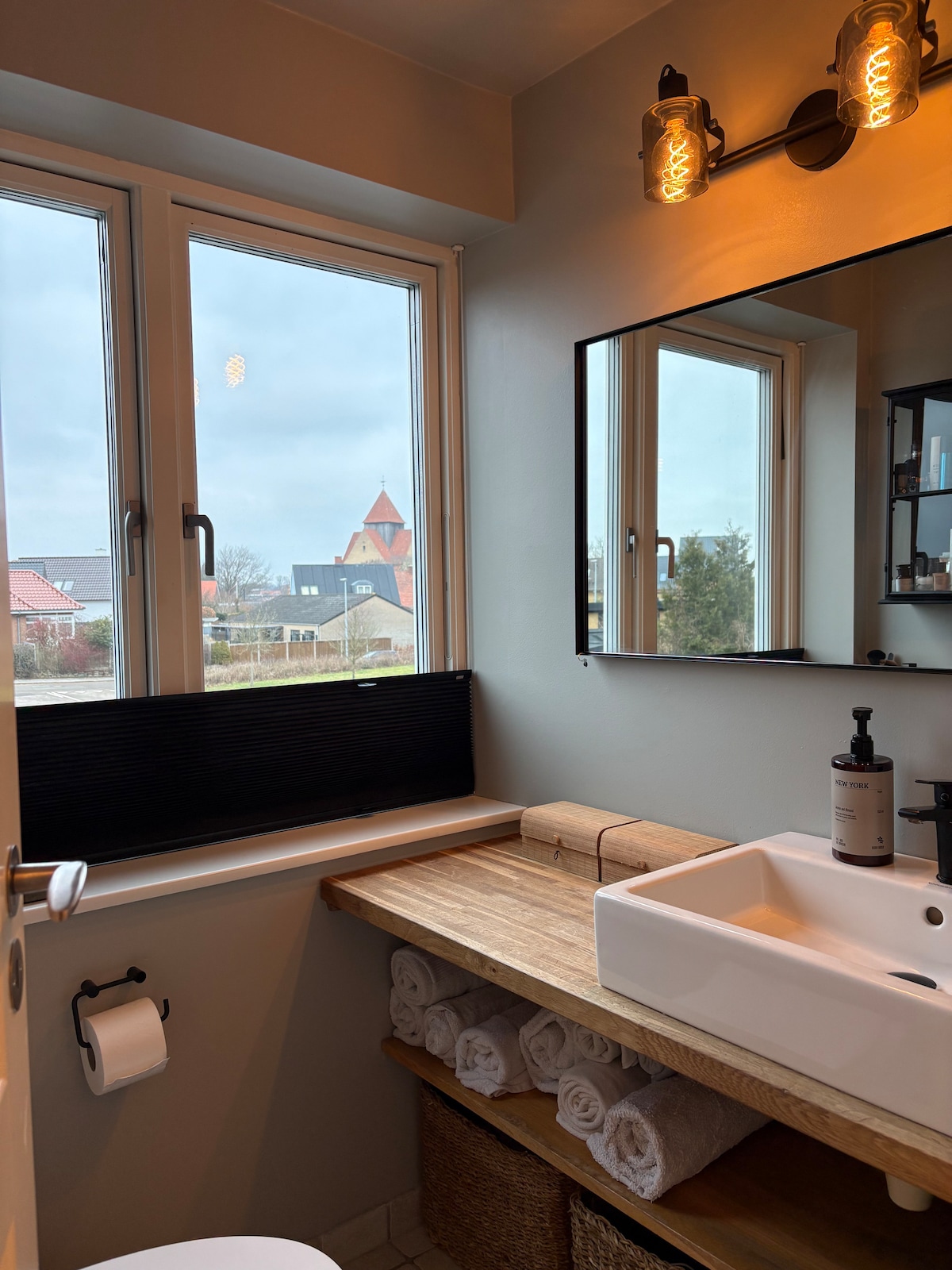 Habitación grande y luminosa recientemente renovada en 1 piso con fantásticas vistas (y con la posibilidad de 2 camas adicionales además de una cama doble además de una cama doble) y una habitación más pequeña recientemente renovada con techos abovedados en la planta baja, también con bonitas vistas y cama doble. También hay una gran sala de estar con la posibilidad de "cine" hygge con un gran lienzo, un juego de futbolín o simplemente relajación pura con un buen libro. El baño está en la planta baja. Hay un bonito sofá cama y buenos colchones de caja.