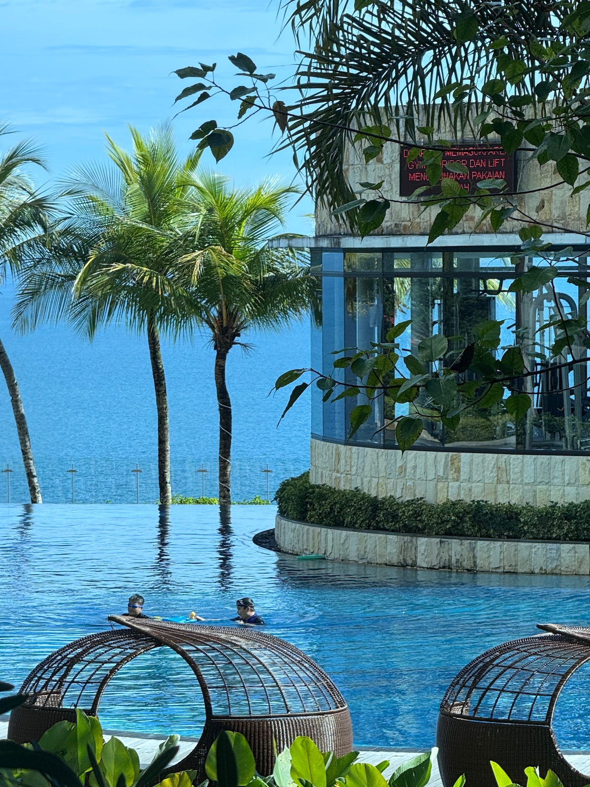 Relájate con toda la familia en este lugar tranquilo para alojarse. El precio es muy asequible. instalaciones de gimnasio, piscina, natación,jacuzzi los utensilios de cocina están disponibles en una nevera. arrocera,dispensador y cubiertos, toallas de baño disponibles,jabón y sampho... vistas al mar y a la ciudad