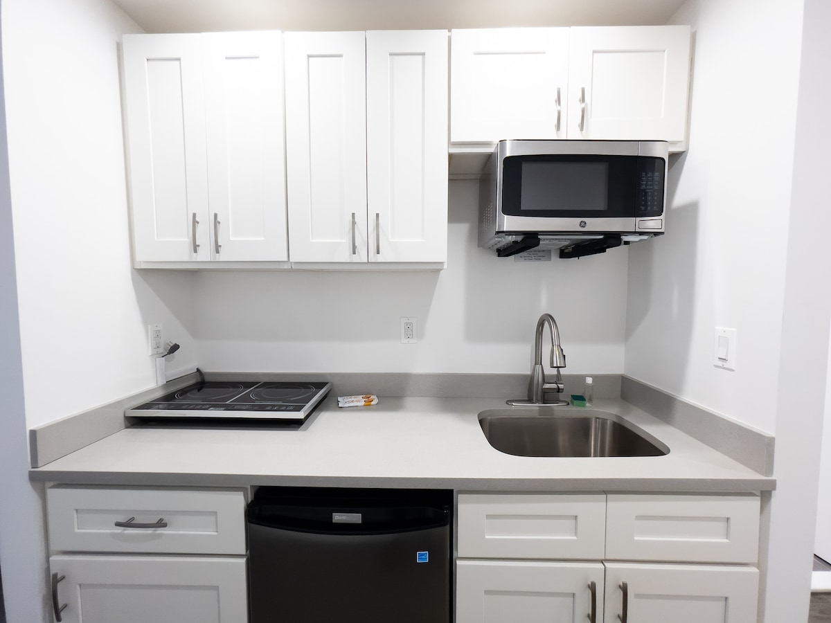 Con una cama tamaño queen, muchas áreas para sentarse, un baño más allá, una litera, además de una habitación para pasear, tendrás justo lo que necesitas para sentirte en casa en un espacio que realmente puedes llamar tuyo.