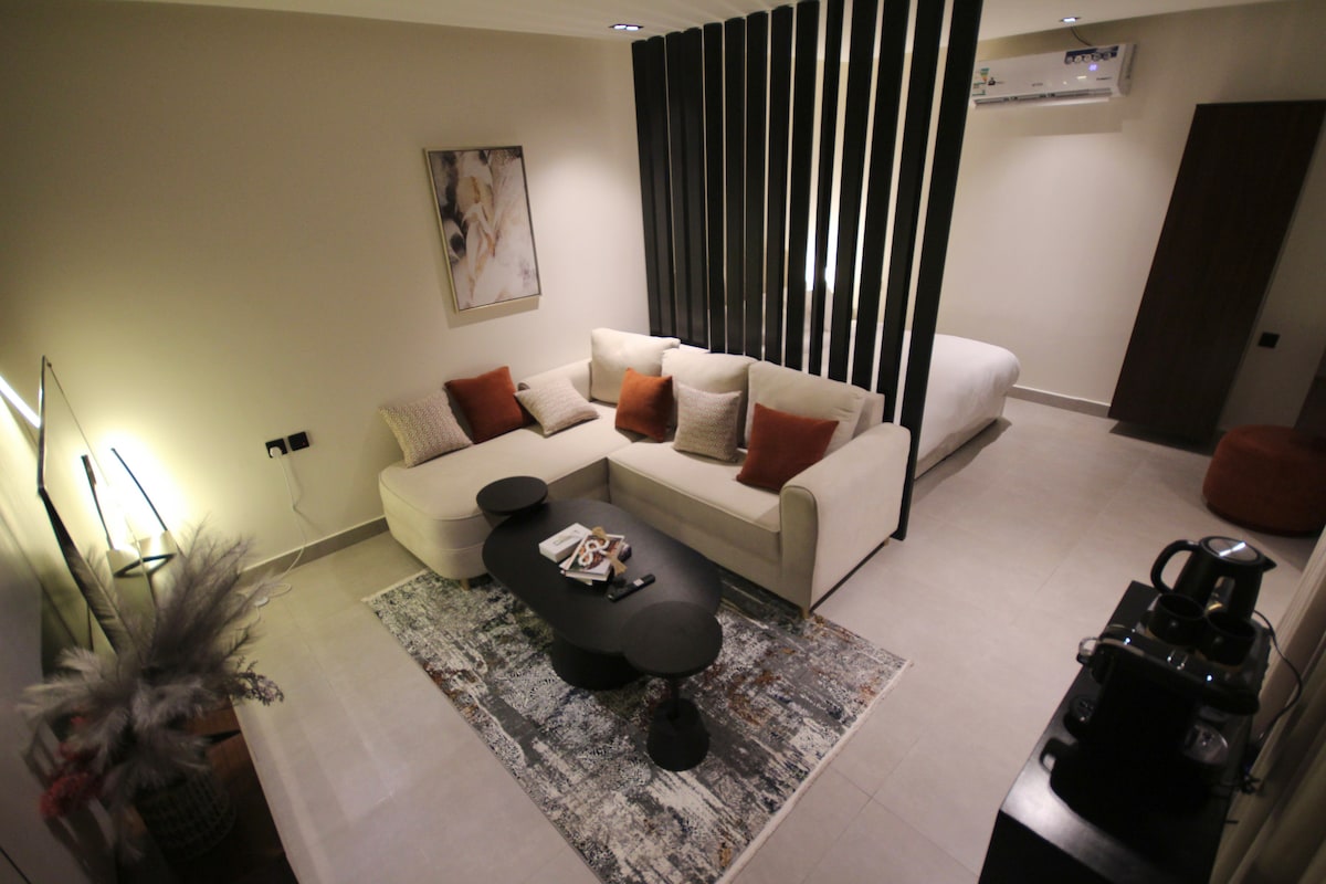 Elegante estudio en el distrito de Al Aqiq, totalmente equipado con todas las comodidades, con entrada inteligente y una ubicación privilegiada con fácil acceso a los principales destinos de Riad. A 8 minutos del Boulevard A 8 minutos de la tierra de las bestias A 7 minutos de KAFD A 18 minutos del aeropuerto. A 6 minutos de la Universidad Rey Saud Internet 5G de alta velocidad ilimitado disponible Pantalla de 70 pulgadas