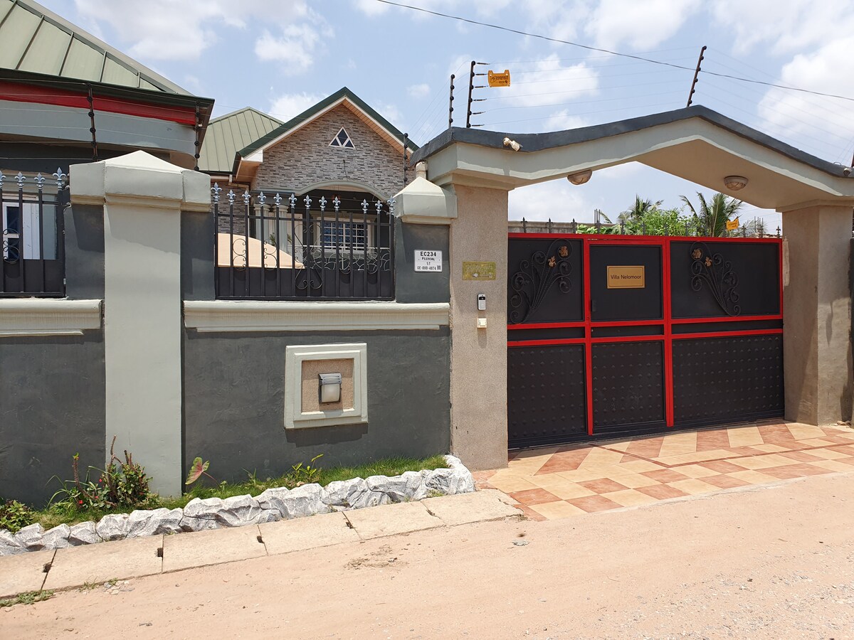 Villa Nelomoor, una villa independiente justo fuera del centro de Accra, tiene cuatro habitaciones. La villa tiene una cocina totalmente equipada, una habitación familiar con una gran pantalla plana y una barra. La terraza, siempre soleada, tiene hermosos muebles de jardín y una sombrilla. Es un lugar seguro, completamente amurallado, equipado con su propia puerta de entrada y monitoreado por cámaras en general. El lugar es adecuado para un grupo que viaja o una familia con niños para retirarse, así como para descubrir Accra.