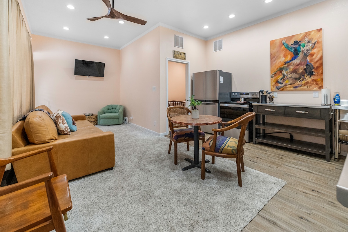 This unique downtown De Leon studio is centrally located to the hustle and bustle of the busiest town with the friendliest people. With its vintage exterior and modern western flair it has a style all its own. You’ll find it has all the necessities for a comfortable overnight or extended stay.