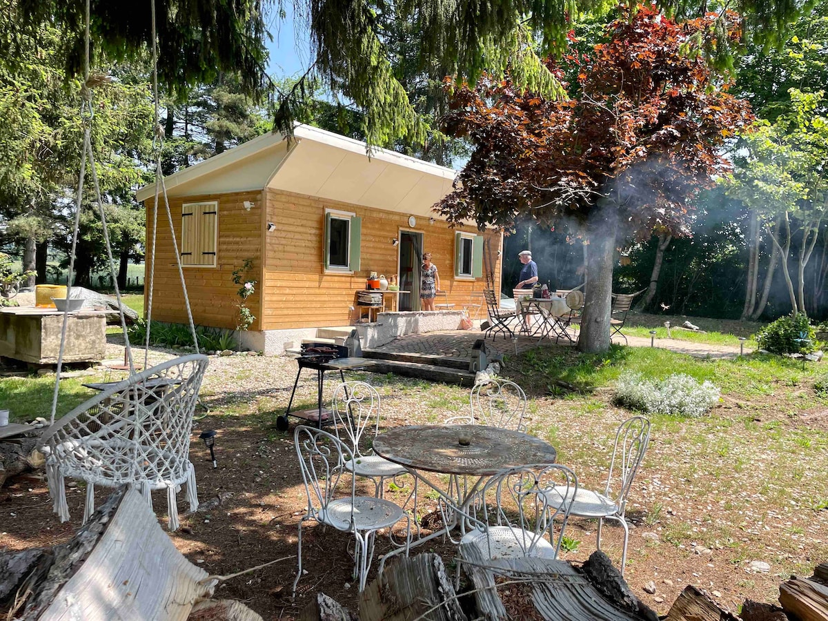 ¡Chalet! Con un parque de 3250 m2 completamente cerrado y decorado con magníficos árboles. ¡¡¡Wifi gratuito y AIRE ACONDICIONADO!!! cocina integrada LV.Estufa de leña, sofá cama 2p,TV, ducha a ras de suelo, secador de toallas y lavadora, cha. Cama de calidad de 140x190. terraza con mesa y sillas, muebles de jardín, tumbonas, hamacas, asientos columpio, ducha exterior, barbacoa, petanca, mesa de ping pong, dardos. A 1 hora de Lyon,Grenoble, Chambéry, cerca de la autopista A48 , Charavines lago de Paladru 15 m