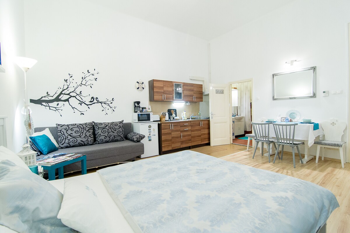 Recuéstate, relájate y disfruta de uno de los escondites más acogedores de la ciudad. Nookbed es un pequeño refugio con estilo en el corazón de Buda, donde mirar desde la cama se siente como contemplar el bosque, pero está a solo unos minutos de la plaza Móricz Zsigmond, el lago Feneketlen y los vibrantes cafés, galerías y panaderías del bulevar Bartók Béla. Perfecto para parejas, exploradores urbanos o cualquier persona que quiera paz y estilo en el centro de Buda.