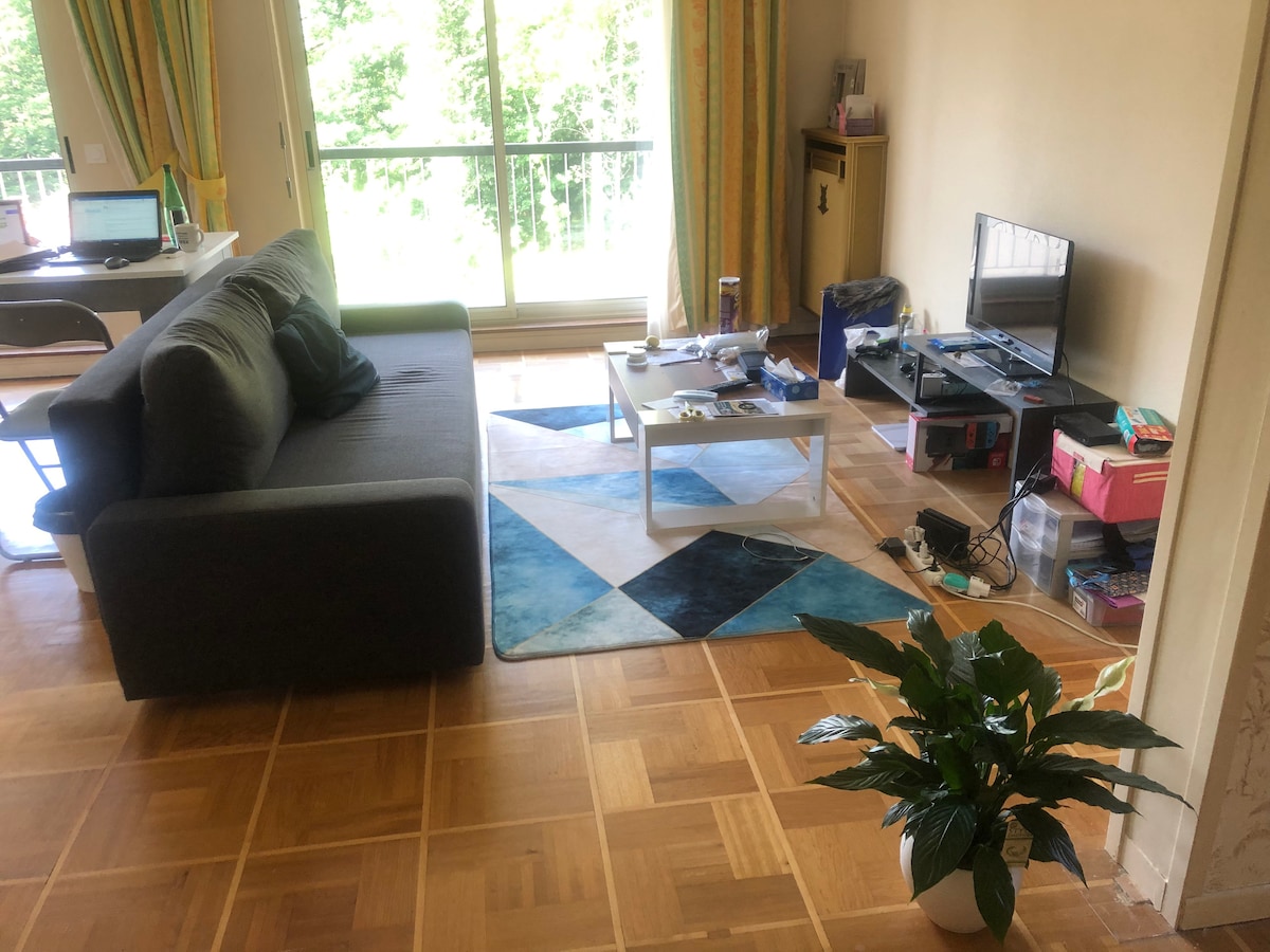 Apartamento moderno y espacioso en Écully, ideal para 2 a 4 personas. Disfruta de un amplio y luminoso salón con sofá cama y TV, una cocina equipada, un dormitorio con cama doble, un vestidor, un bonito baño y una agradable terraza. Wifi, aire acondicionado, sábanas, toallas, jabón, champú, lavadora y todos los equipos necesarios. Barrio tranquilo, cerca del transporte y EM Lyon.